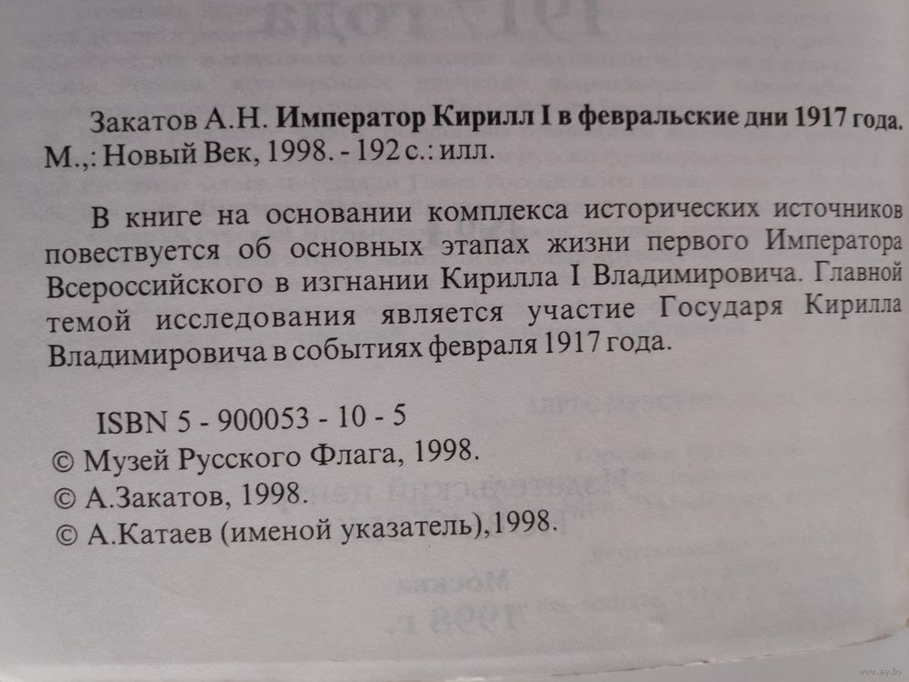 В книге на основании комплекса исторических источников повествуется об основных этапах жизни первого Императора Всероссийского в изгнании Кирилла I Владимировича. Главной темой исследования является участие Государя Кирилла Владимировича в событиях февраля 1917 года.