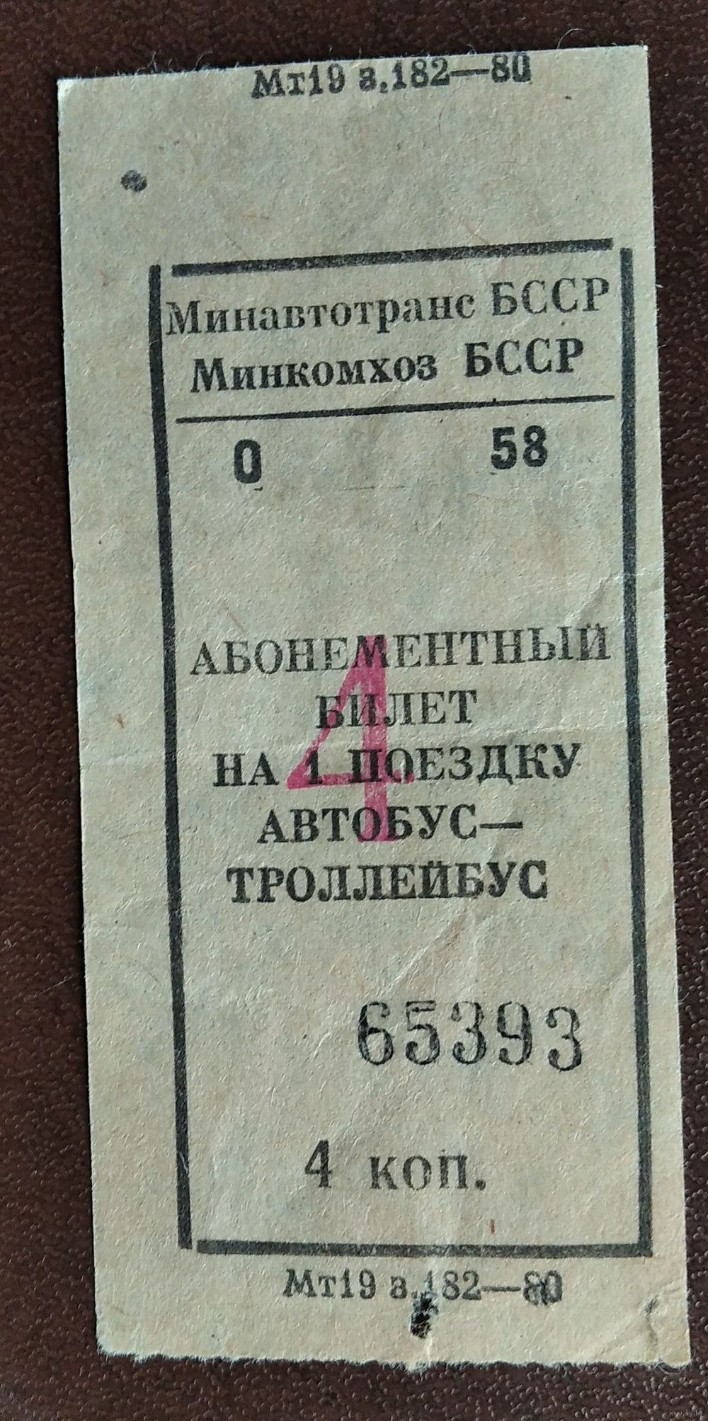 Абонементный билет на поездку в автобусе-трамвае. 4 коп.