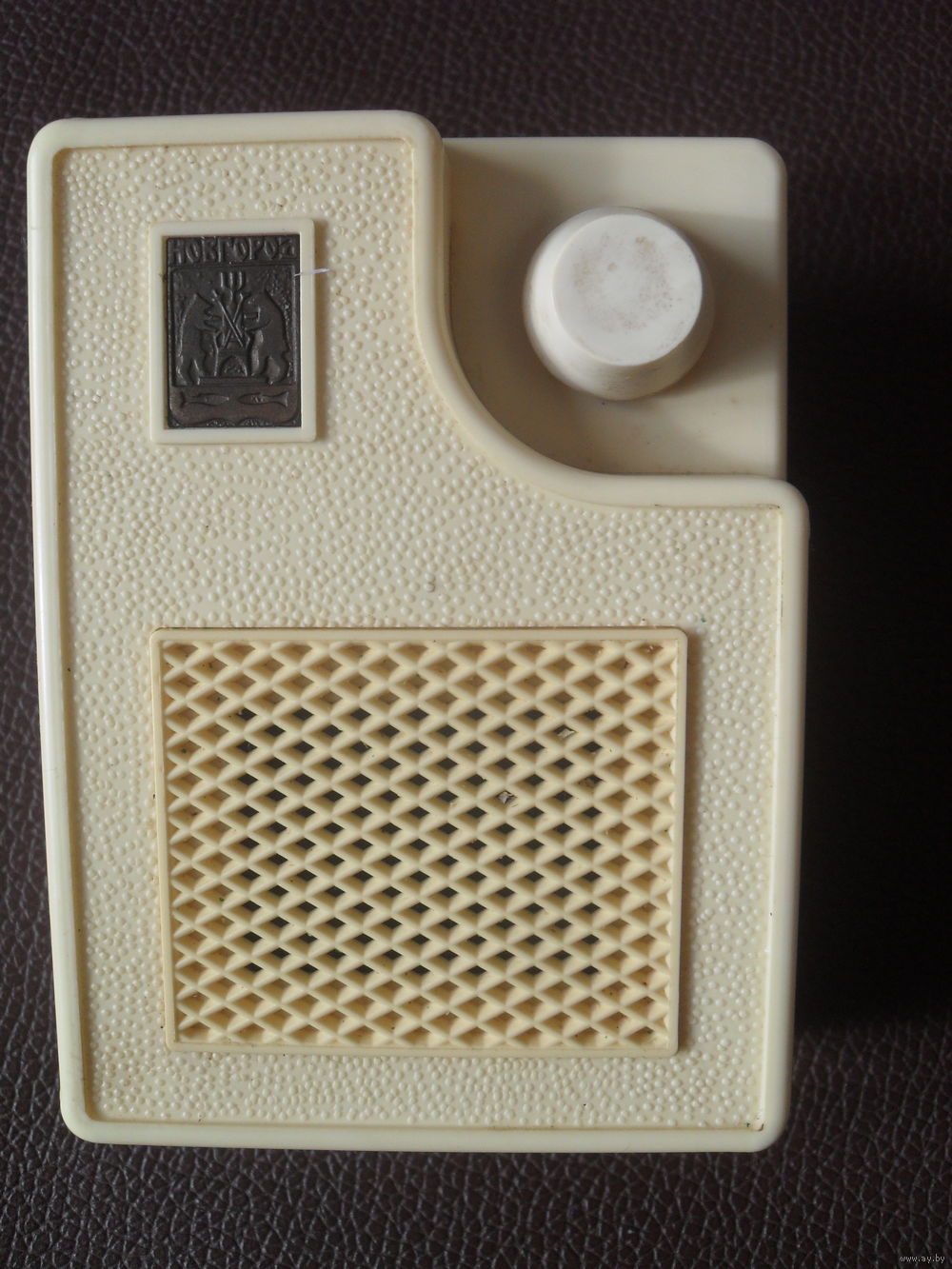 Абонентский громкоговоритель "Новгород с 1991 года выпускало ПО "Планета". г. Новгород. Сувенирный абонентский громкоговоритель Новгород представляет собой безпроводную конструкцию, включающуюся непосредственно в радиорозетку. Громкоговоритель предназначен для трансляции низкочастотного канала в сетях проводного радиовещания напряжением в 30 вольт. Диапазон воспроизводимых частот звука - 200...4000 Гц. Все детали внутри корпуса крепятся в пазах и выемках задней крышки и фиксируются с лицевой панелью четырьмя винтами сзади.
