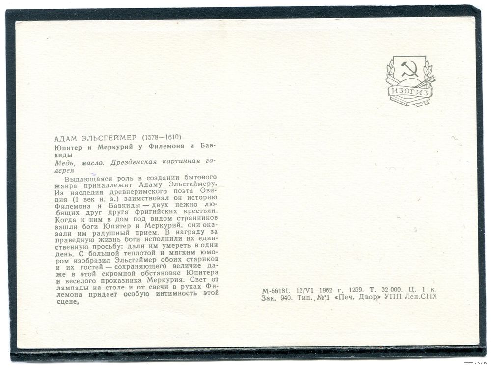 Адам Эльсгеймер. Юпитер и Меркурий у Филимона и Бавкиды. Изд.1962