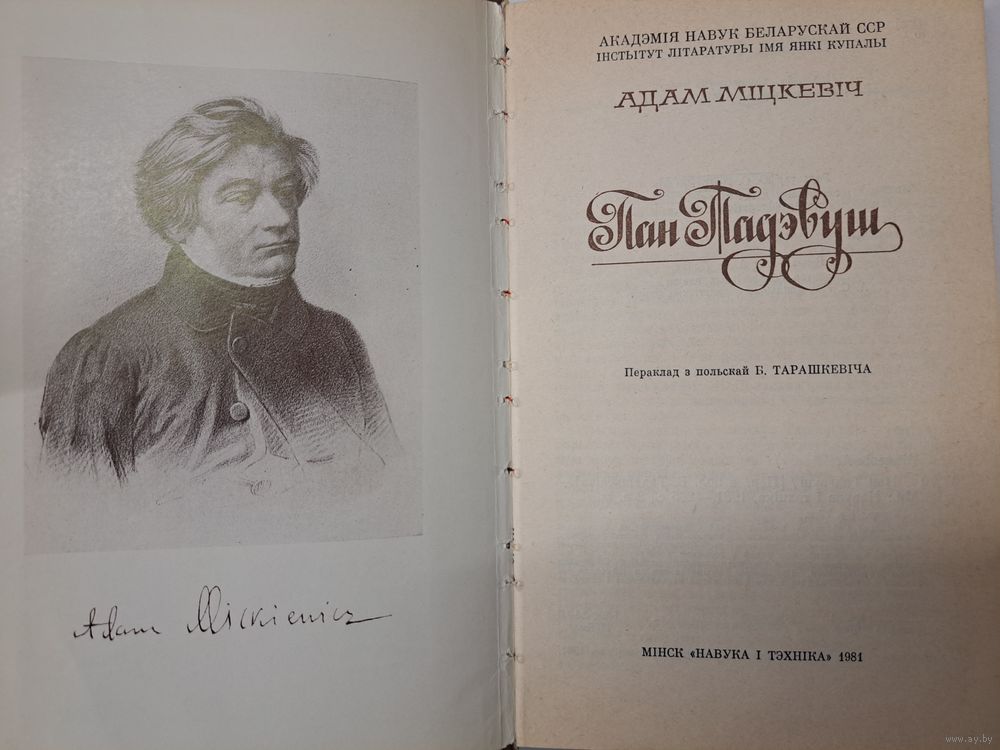 Адам Міцкевіч Пан Тадэвуш пераклад Браніслава Тарашкевіча. 1981