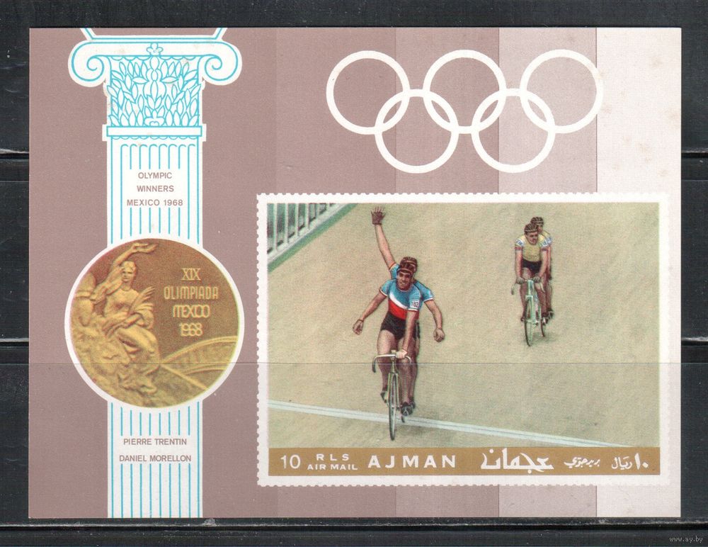 Аджман-1969(Мих.Бл.77Б) , ** , Спорт, Велоспорт , Велосипеды, ОИ-1968