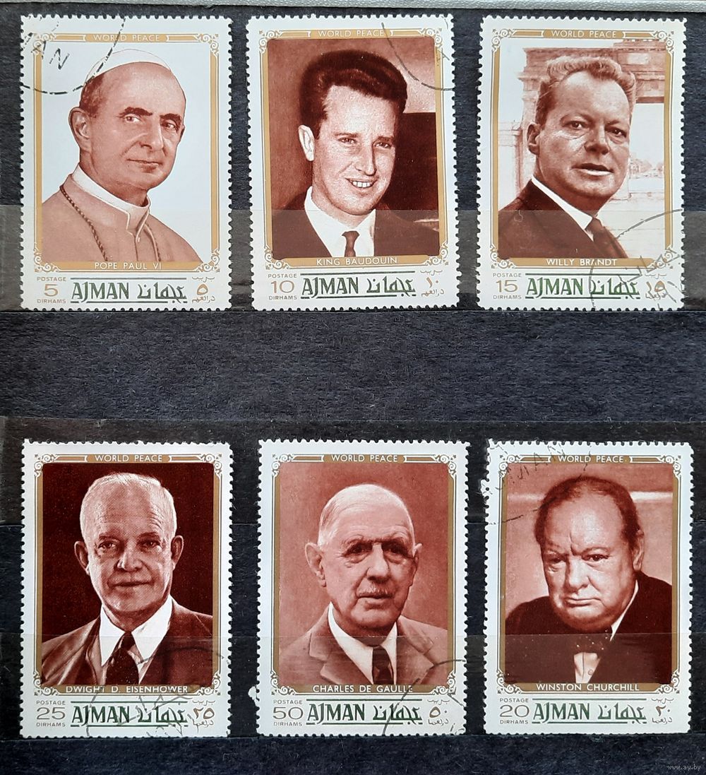 Аджман 1970г. 6 из 8 марок серии: " Известные личности". гаш.