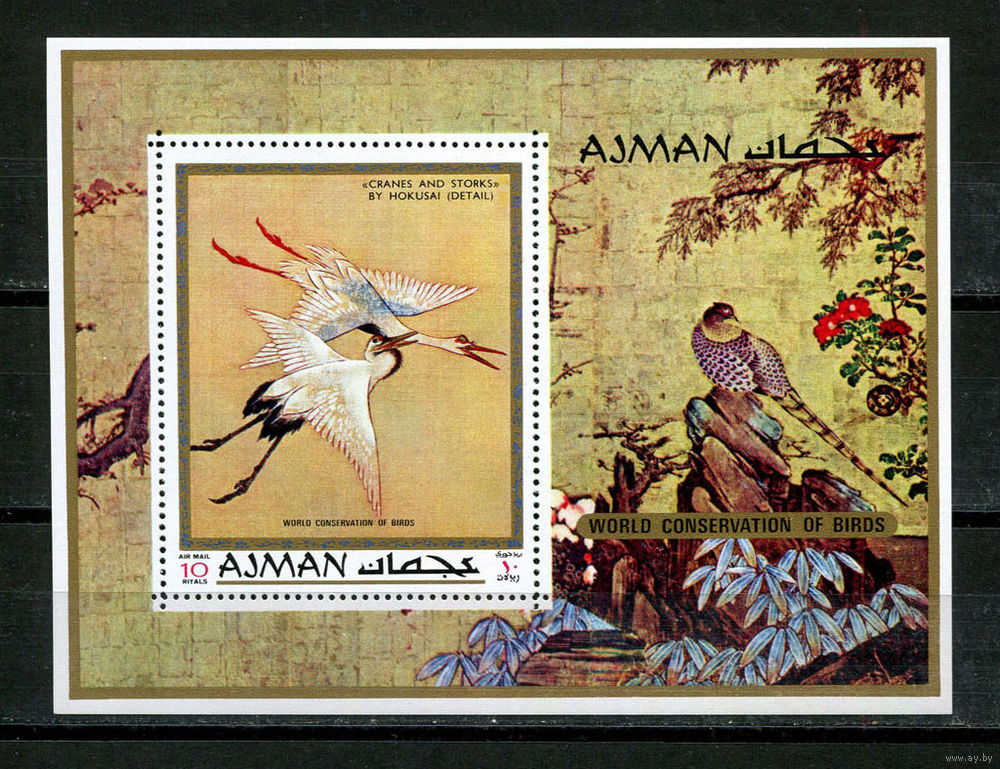 Аджман - 1971 - Экзотические птицы. Картины Хиросигэ и Хокусая - [Mi. bl. 273] - 1 блок. MNH. (Лот 33JE)-TG2P4