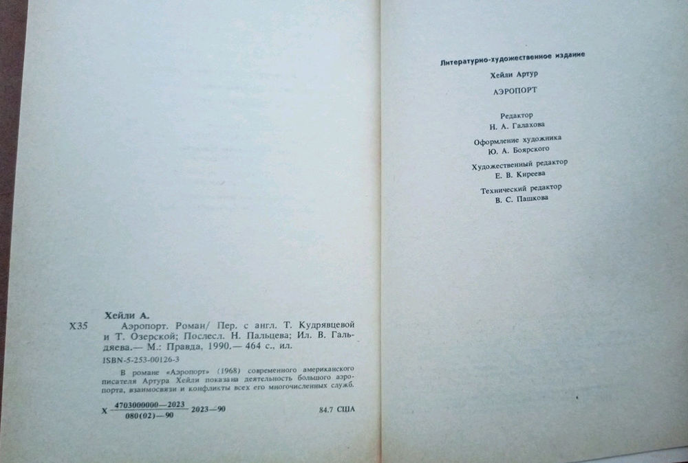 "Аэропорт". Артур Хейли. Изд-во "Правда". 1990г.