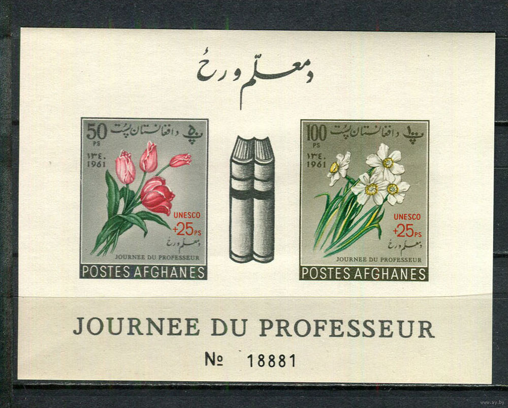 Афганистан - 1963 - Цветы с надпечаткой UNESCO - [Mi. bl. 19B] - 1 блок. MNH. (Лот 34JN)-T4P2