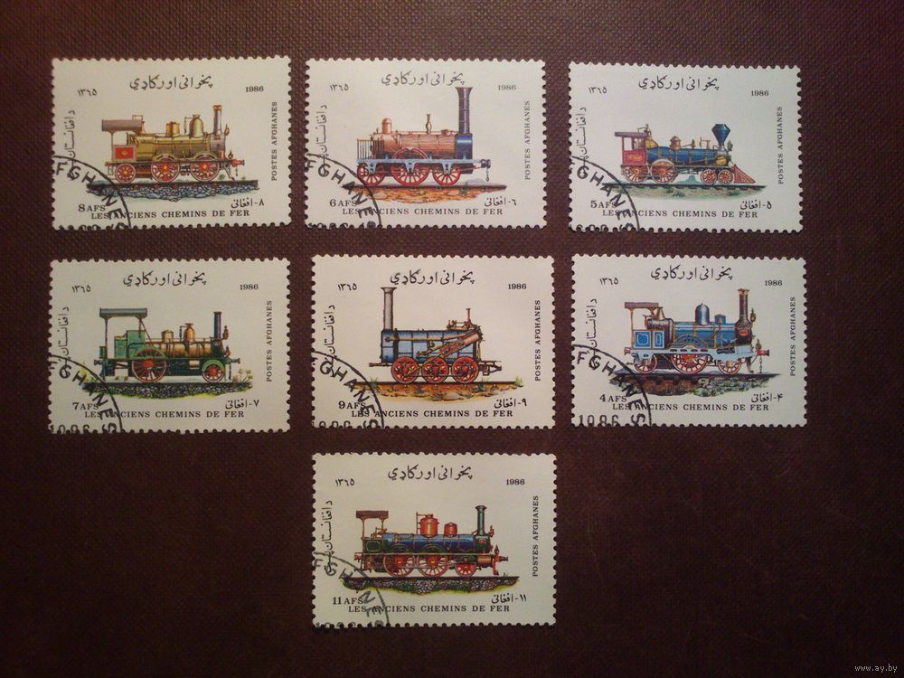 Афганистан 1986 г.Железнодорожные локомотивы XIX века.Гашеная с клеем.Полная серия.