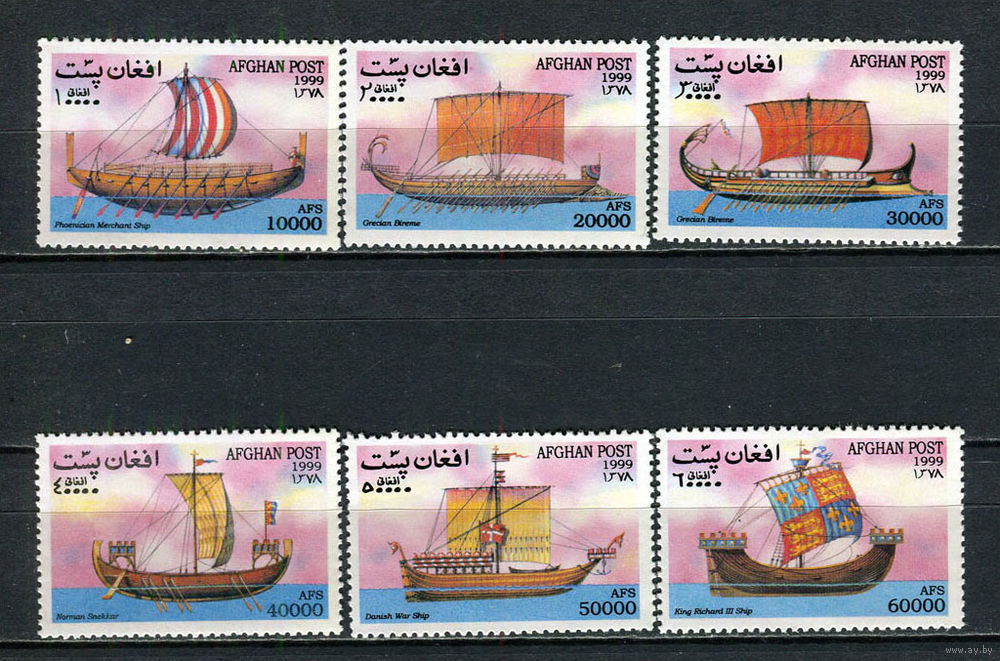 Афганистан - 1999 - Парусники - (пятно на клее) - [Mi. 1930-1935] - полная серия - 6 марок. MNH. (Лот 36JN)-T4P2