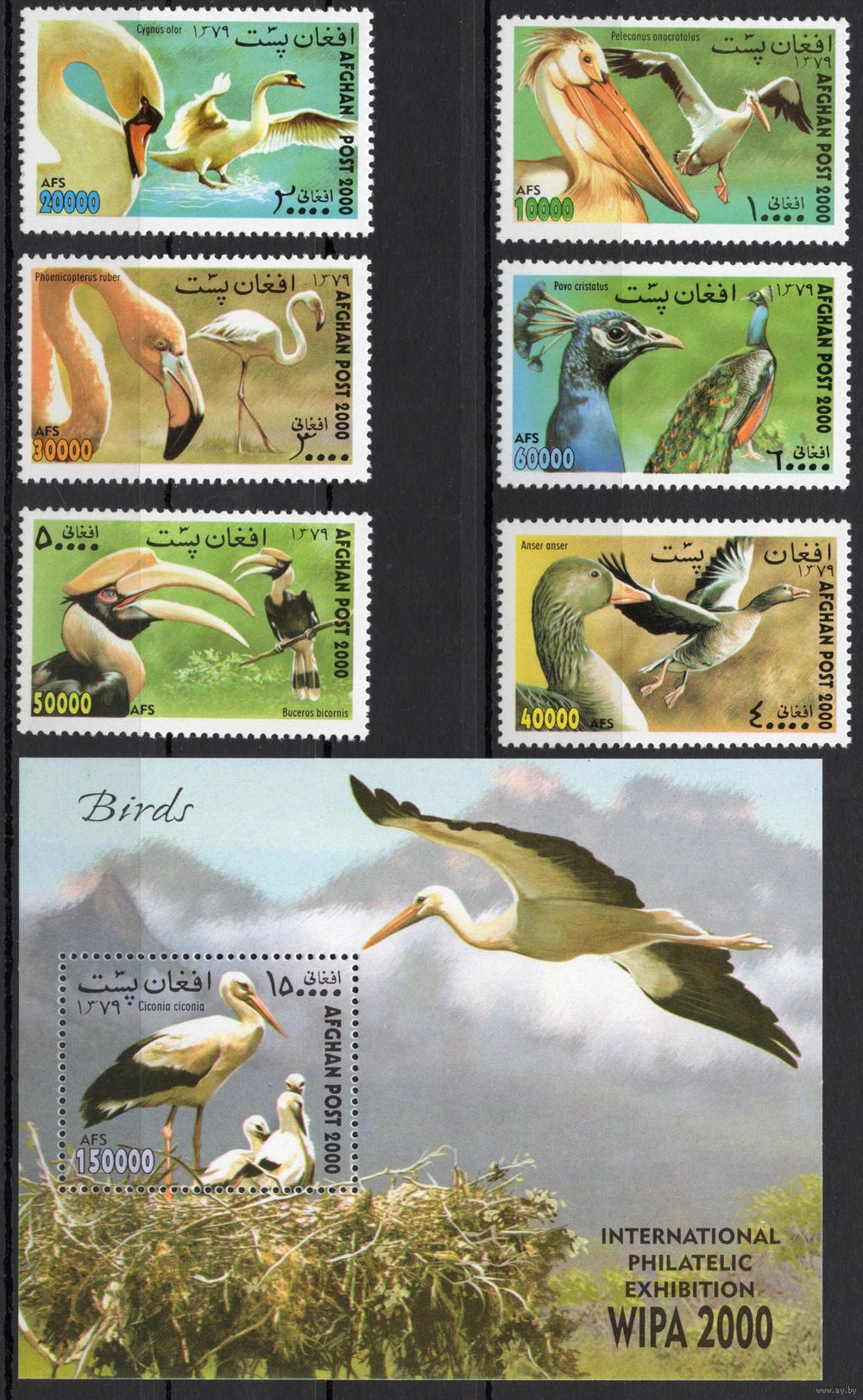 Афганистан 2000. Фауна. Птицы. 6 марок+блок (1944)