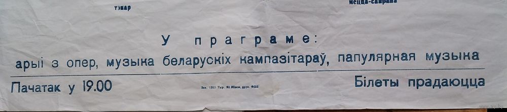 Афіша канцэрту народнага аркестра РБ імя І. Жыновіча.