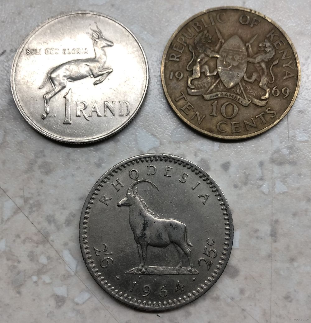 Африка: Родезия 2 1/2 шиллинга 1964 г., Кения 10 центов 1969 г., ЮАР 1 ранд 1989 г.