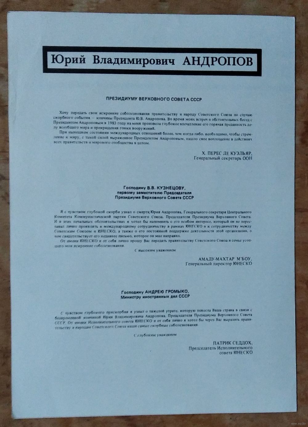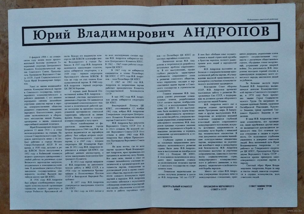 Агитационный материал к смерти Юрия Владимировича Андропова. 1984 г.