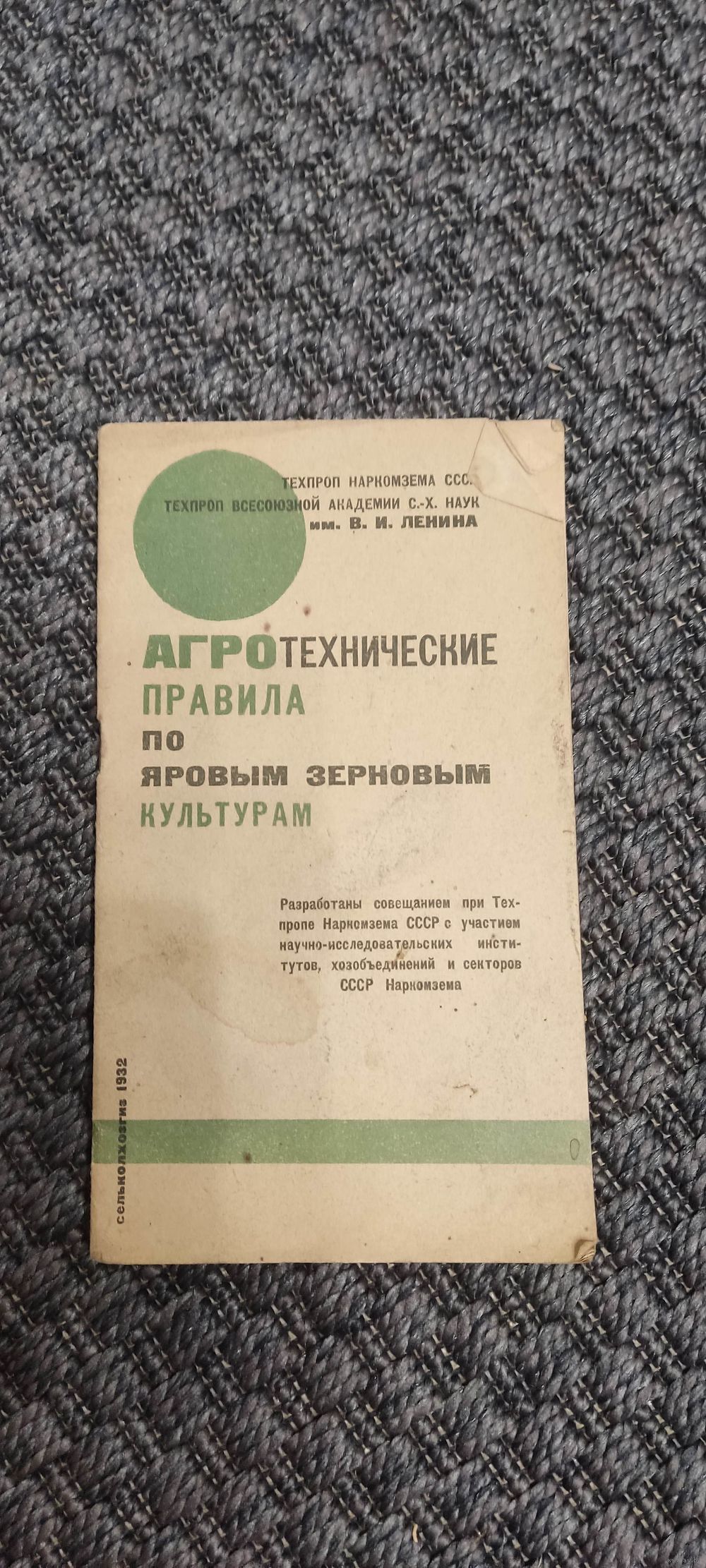 Агротехнические правила по яровым зерновым культурам. СЕЛЬХОЗГИЗ 1932 год.
