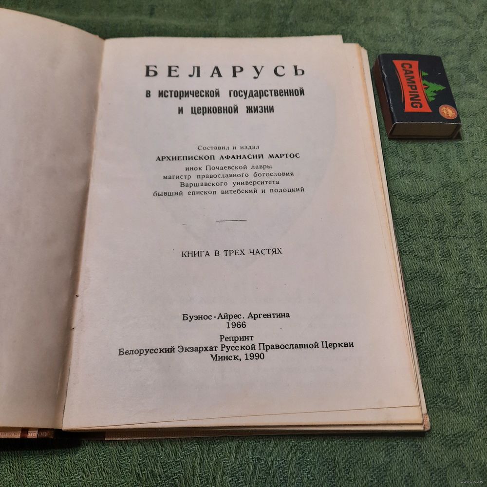 Ахиепископ Афанасий Мартос Беларусь в исторической государственной и церковной жизни, Буэнос-Айрес Аргентина 1966г, Минск 1990г.