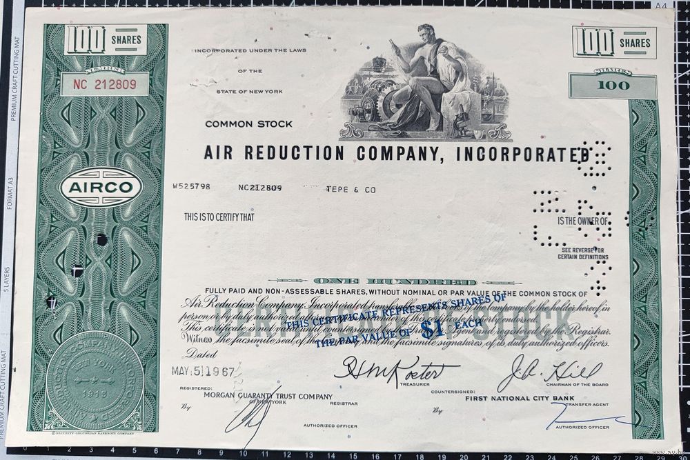 Акция, Air Reduction Company Inc, 100 акций, 1967