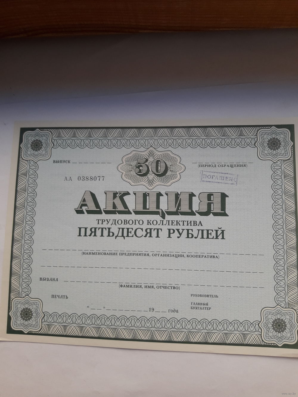 Акция трудового коллектива (МТ Гознак 1989) 50 руб