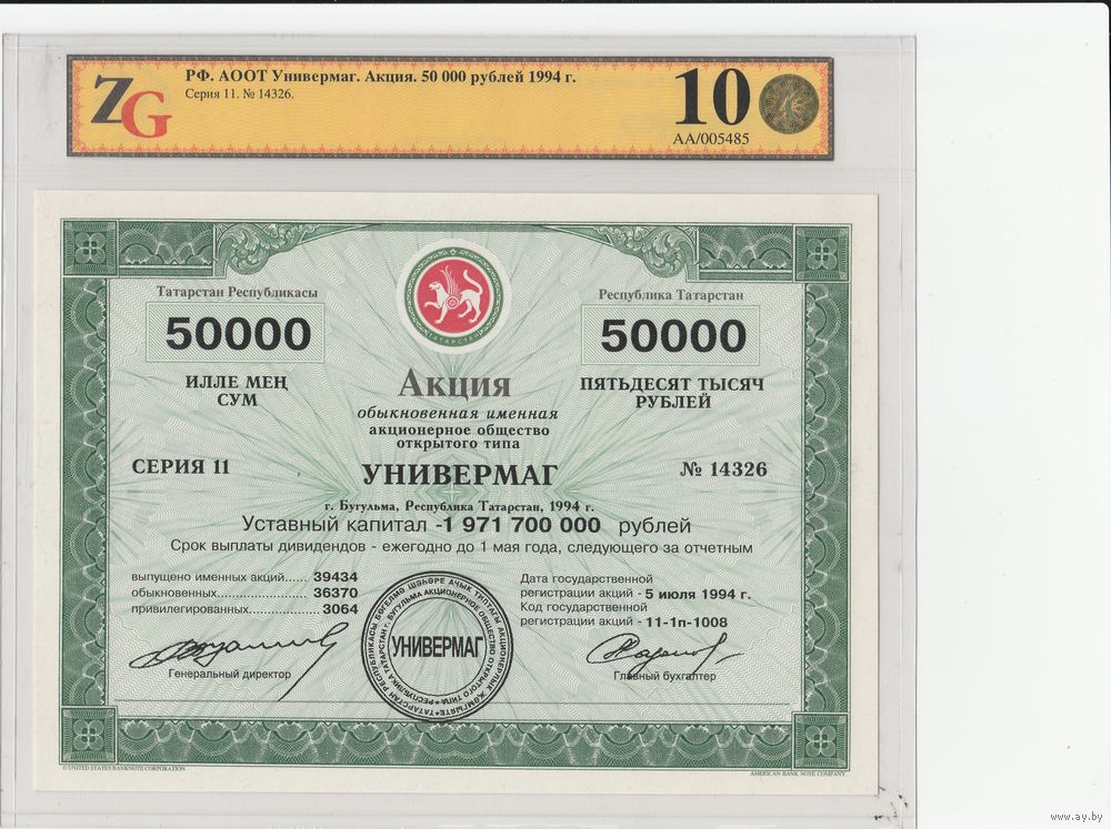 Акция. Универмаг. 1994 года. Приватизация. Экспертиза