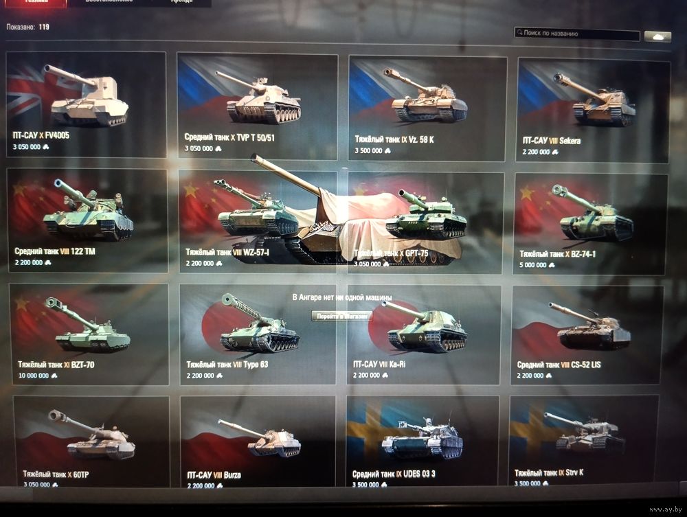 33 танка 10 уровня разных наций (есть танки с 1, 2 и 3 отметками).