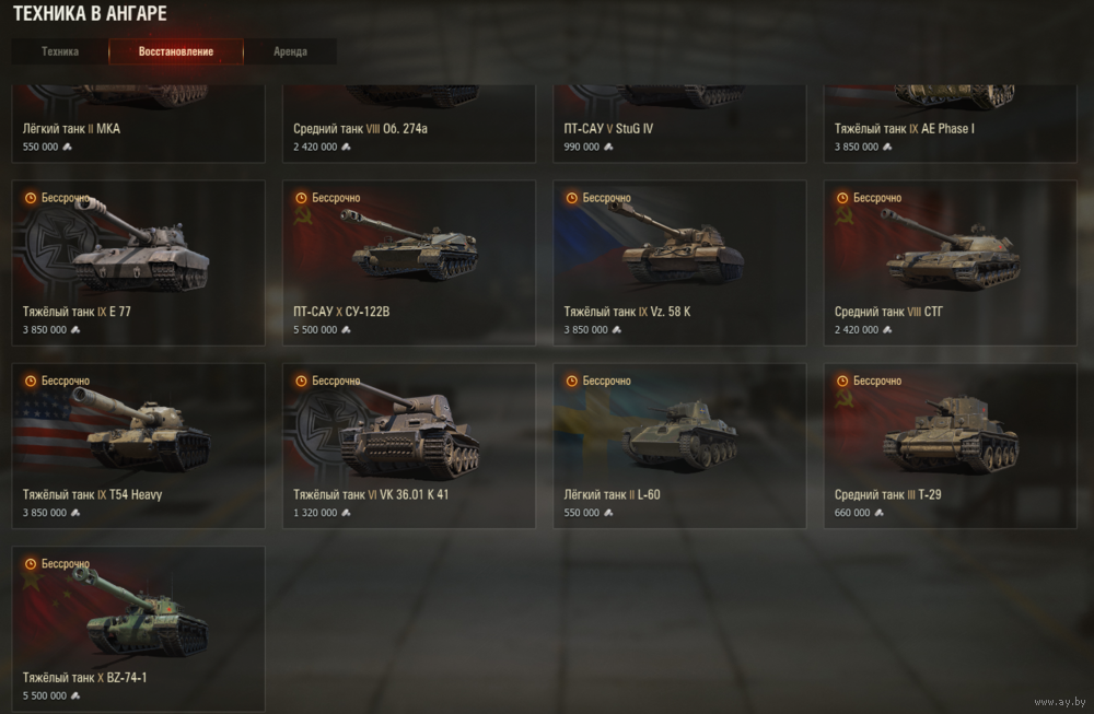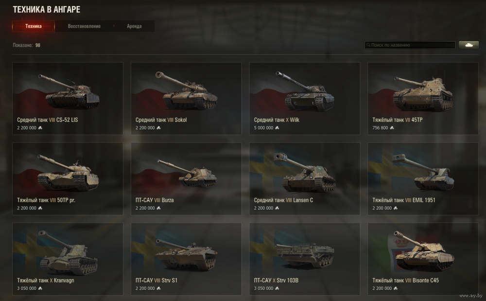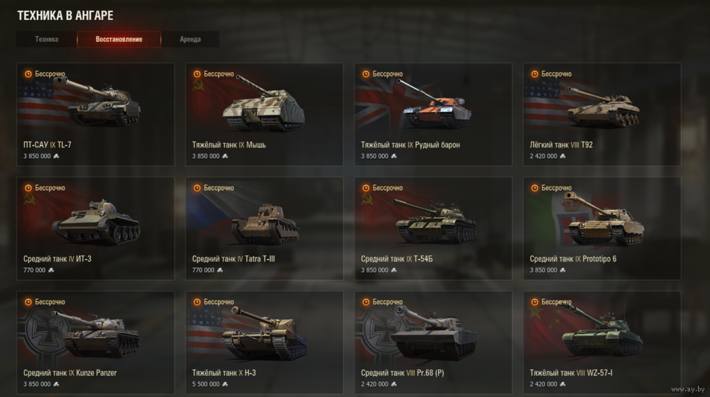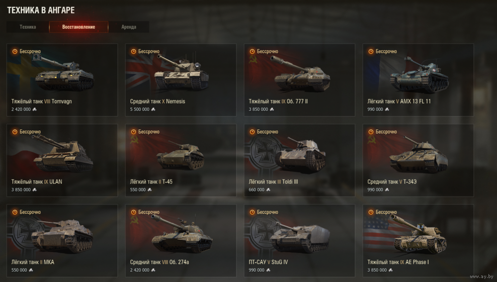 Продаю личным аккаунт 11(лет).В ангаре 98 танков+15 танков в аренде+43 танка доступно для восстановления, 23 танка 10 лвл, 1 танк 11 лвл(BZT-70), 80 премиум танков!!!Есть редкие и многими желаемые танки.Оруженосец, Н-3, Nemesis, Roland, Gandarme, Orso, BZ-74, XM57, MT-58, Wilk, Vulcan, Stug Maus, Таран, Объект 780На аккаунте 900 дней према, 5к голды, 500к свободного опыта, 10кк серебра, множество танков исследовано и доступно к покупкеИмеется льготная техника 8 уровняпо запросу покажу всё остальноеЗа подробностями по телефону или сообщения