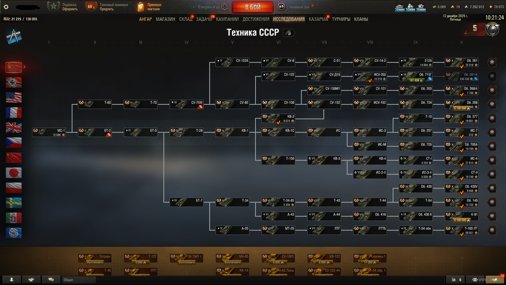 260.279.780 и много 8-9 прем танков,вошли не все скрины,почти все ветки исследованы