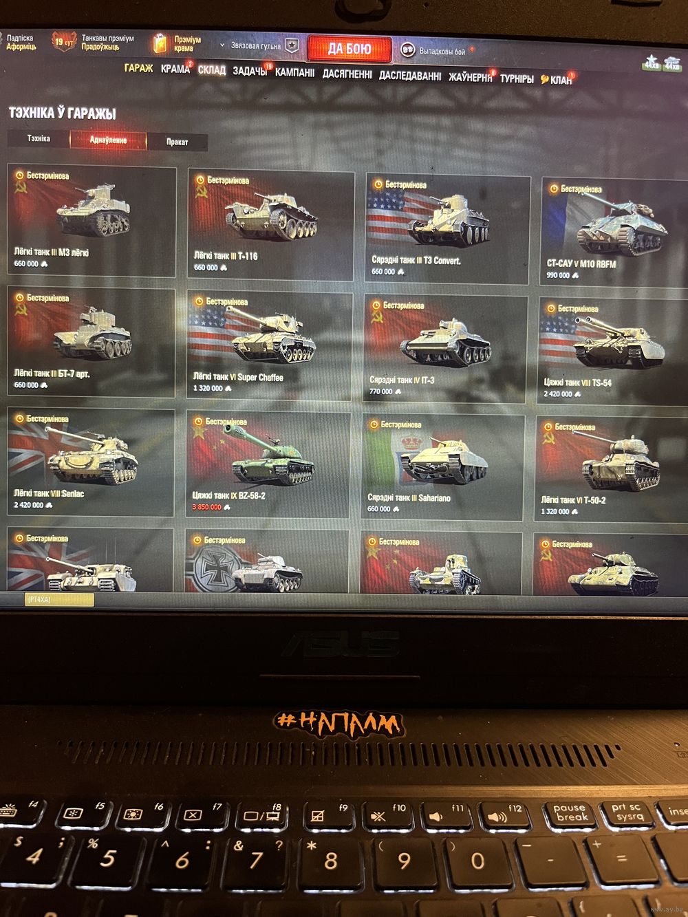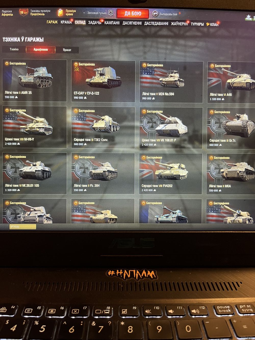 Продам аккаунт 14 года от Мира Танков. На аккаунте 30 танков 10лвл. Много премов 8 и 9 лвл. Есть редкие коллекционные танки, пройдены почти все лбз. 63000 бон на аккаунте, очень много редкого и хорошего оборудования, нашивок, стилей, 3д/2д. Экипаж и почти 700000 свободного опыта и чертежи, что даст возможность забрать еще любых 3 танка 10лвл на выбор при желании. Вн8 2100. За более подробной информацией лс. Цену можно еще обговорить.