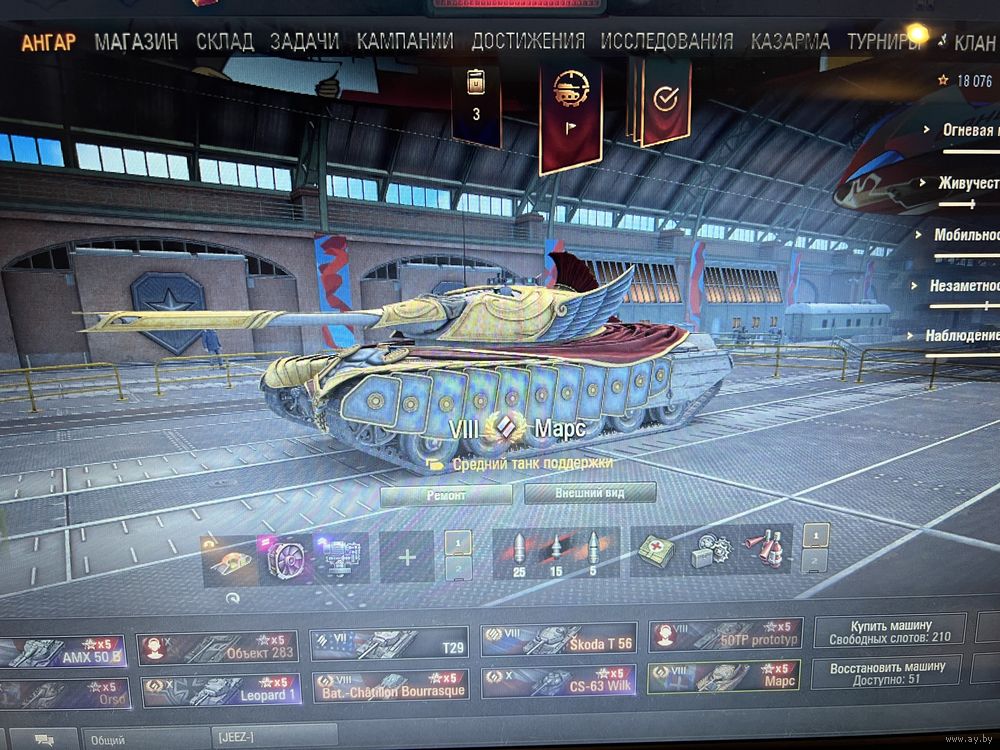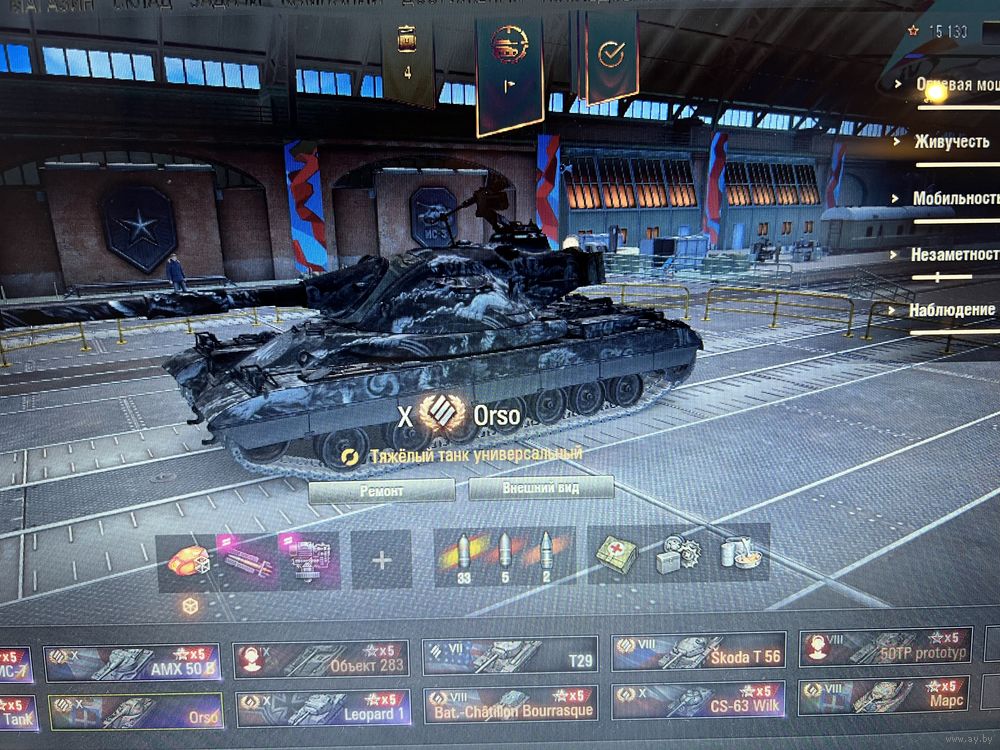 В ангаре ,Wilk,Orso,AMX 50B,Бурасик,Марс,Шкода Т56,Т57 Хеви,Леопард 1