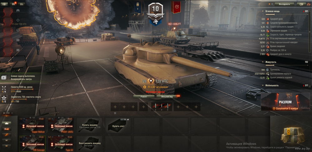 - 7 ур. (4): Super Hellcat, T28 concept, Type62, FV201 (A45)