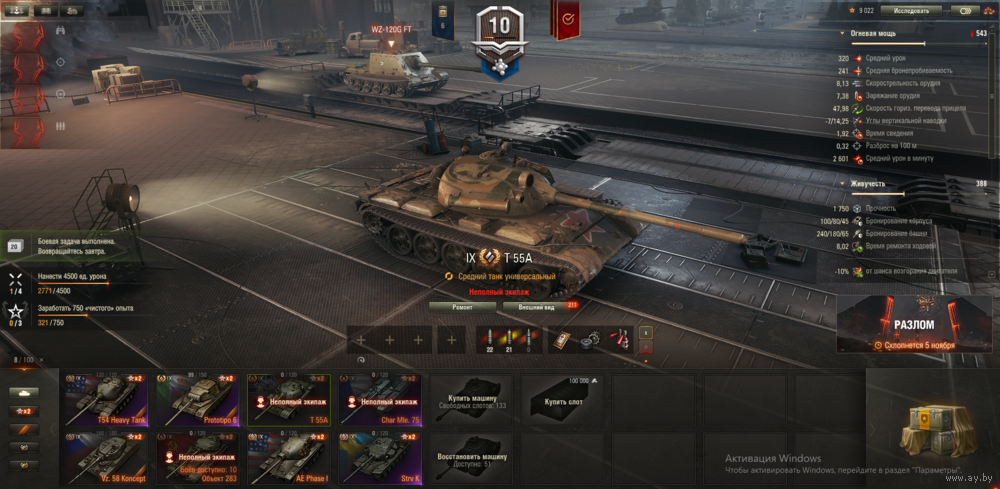- 9 ур. (7): T54 Heavy Tank, Vz.58 Koncept, Prototipo 6, T-55A, AE Phase 1, Char. Mle.75, Strv K