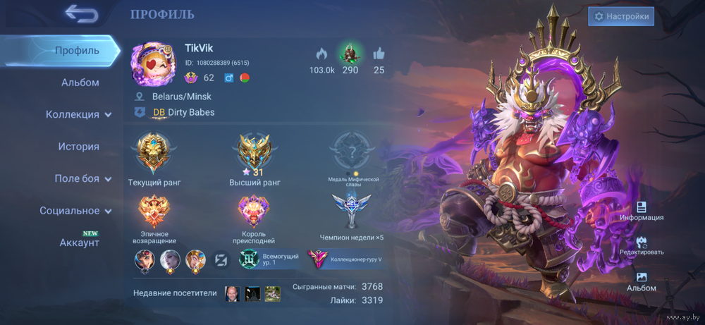Личный аккаунт продаю тк давно забросил игру. Очень хороший процент побед 54%. Куплены все герои. Очень большое количество обликов, эффектов возвращения, смерти и тд. Есть запас золота для покупки новых героев и много всякой всячины в сумке (облики, герои и тд). Полная смена пароля и эмейла. Торг предлагайте вашу сумму. [удалено модератором за нарушение правила 1.3]