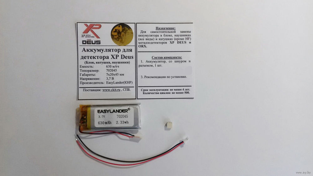 аккумулятор для металлоискателей XP Deus и Orx, наушники WS-1 – WS-6, а также в катушки (кроме HF).