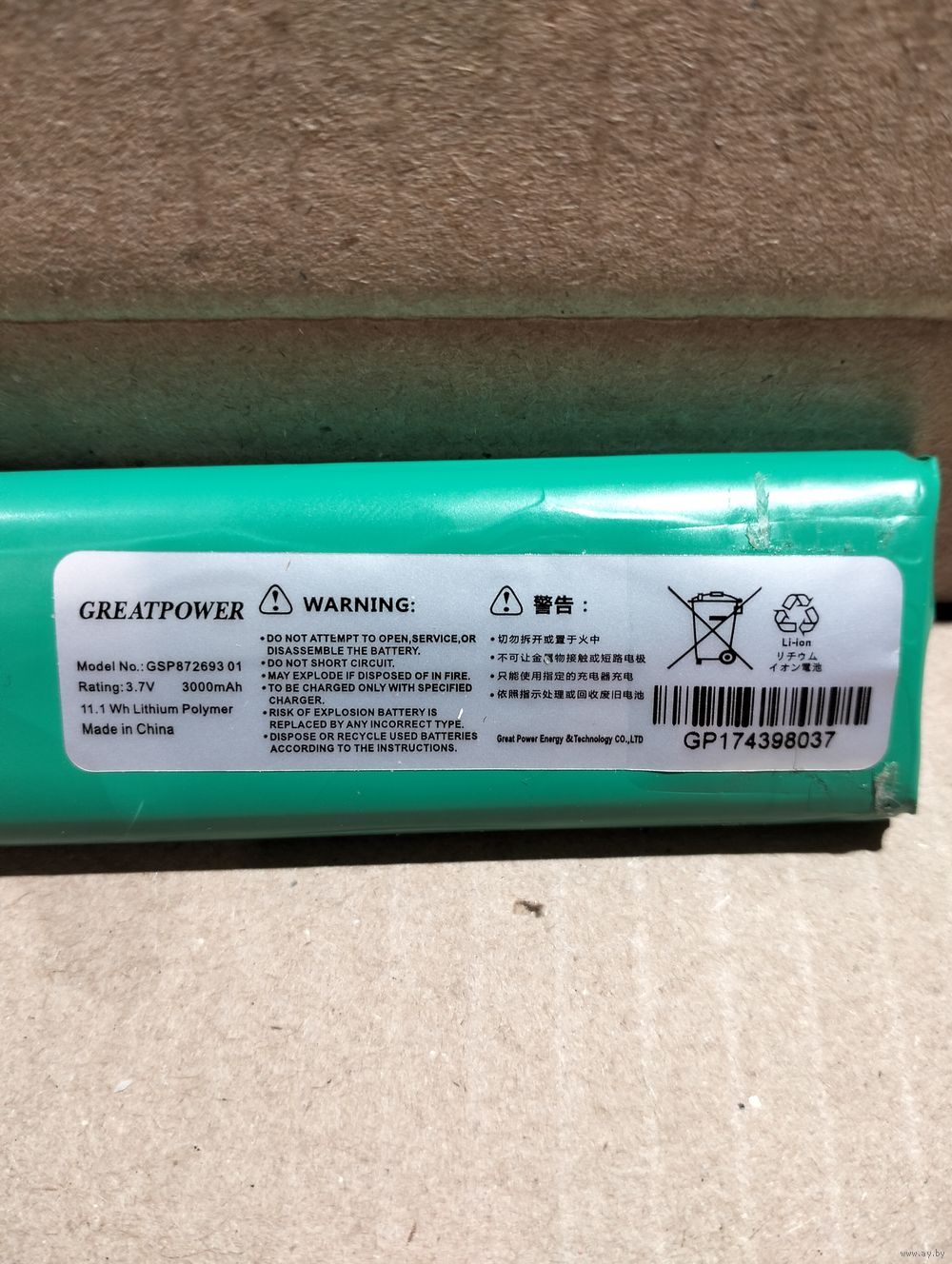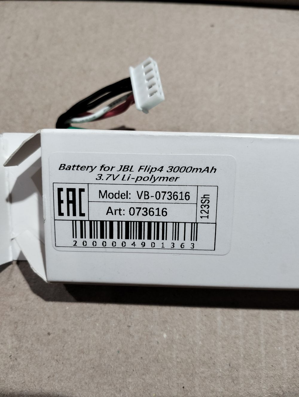 Литийполимерный аккумулятор 3000mAh, от блютуз колонки JBL Flip4 (оригинал), б/у, ёмкость для колонки маловата. Текущее напряжение 3.6В.