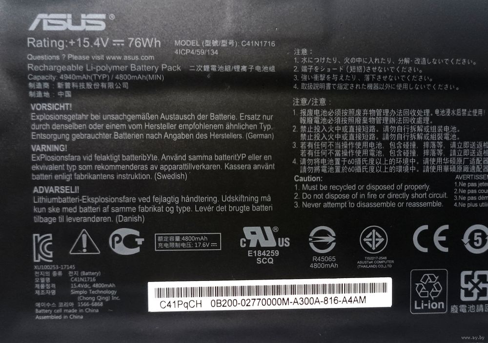 Емкость: 4800 мАч (минимум) или 76 Вт·ч.