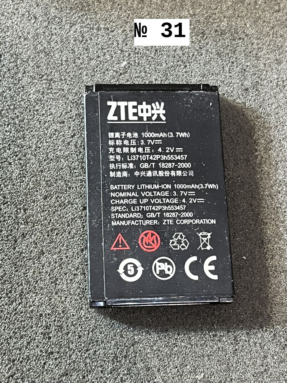 №12. Аккумулятор ZTE (1000 мА/ч), оригинал=10руб