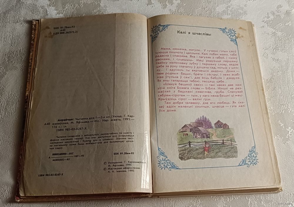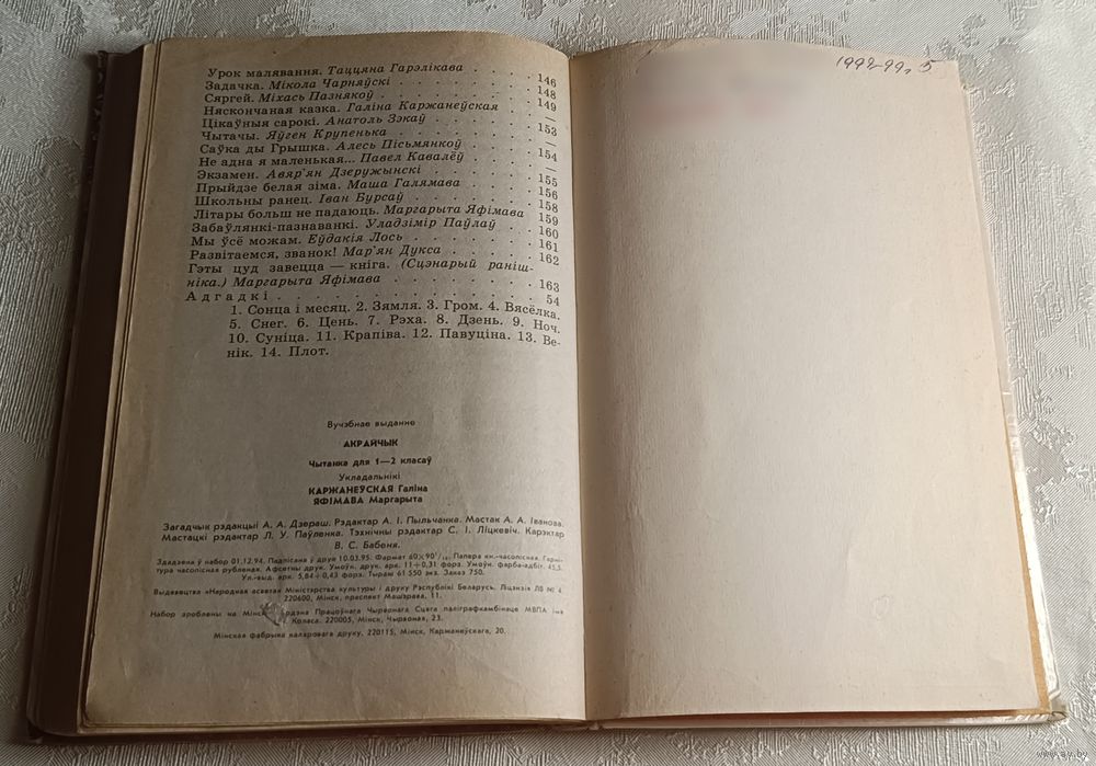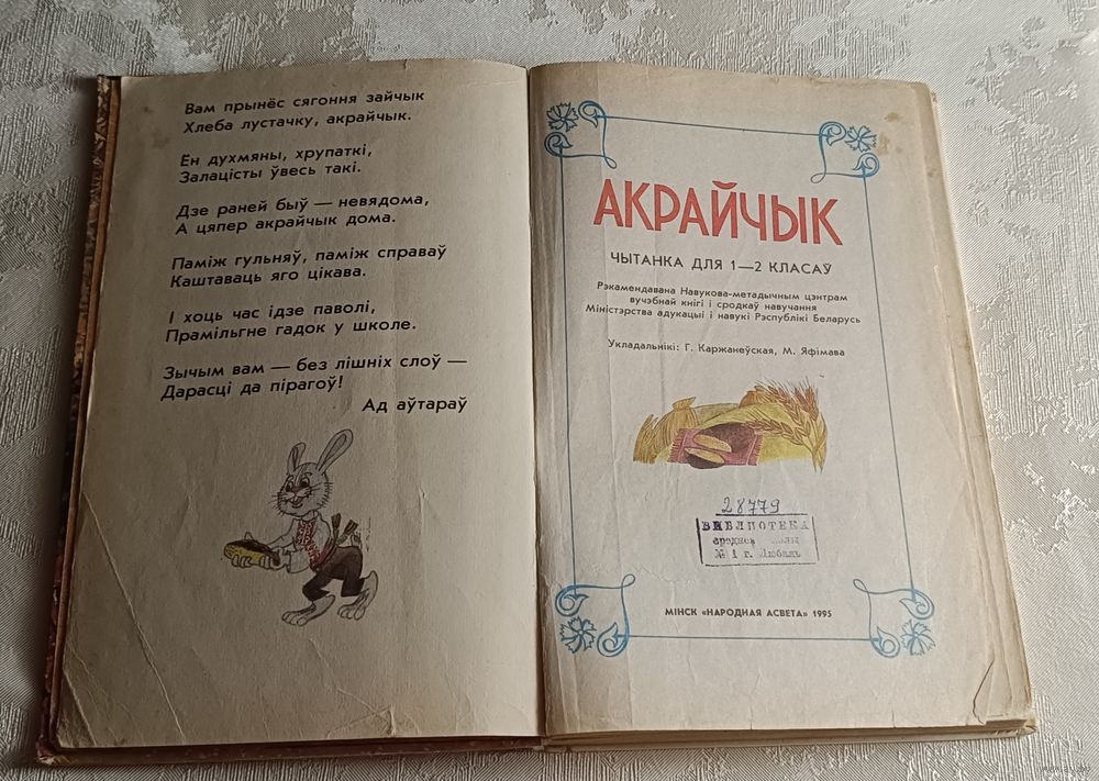 Акрайчык. Чытанка для 1-2-х кл. Уклад. Г. Каржанеўская, М. Яфімава. — Мн.: Нар. асвета, 1995.-176 с.: іл.