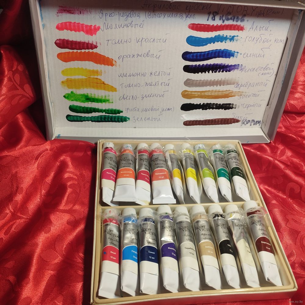 Набор 18 цветов. Тубы по 12 мл. в части юбочки от колпачков откололись,, резьба колпачков на тубу накручивается (5 шт).