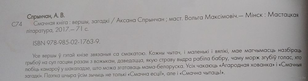 Аксана Спрынчан. Смачная кніга: вершы, загадкі. Аўтограф аўтара. Мінск : Мастацкая літаратура, 2017 г. 68 с. Цверды пераплет.