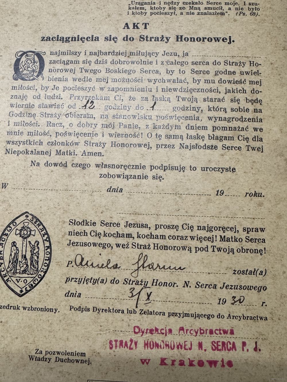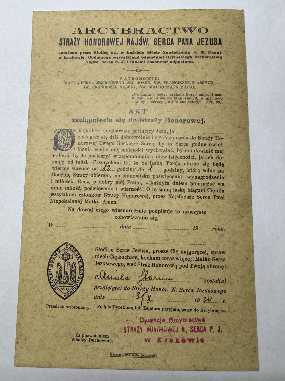 Акт принятия do Strazy Honorowej.1930г.в оригинальной рамке.