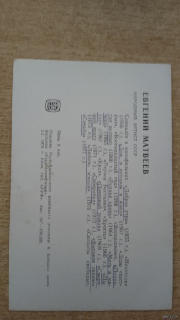 Актер ЕВГЕНИЙ МАТВЕЕВ 1978г