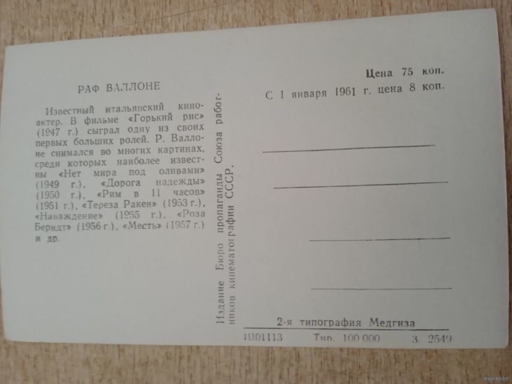 АКТЕР РАФ ВАЛЛОНЕ(ИТАЛИЯ) тираж 100.00