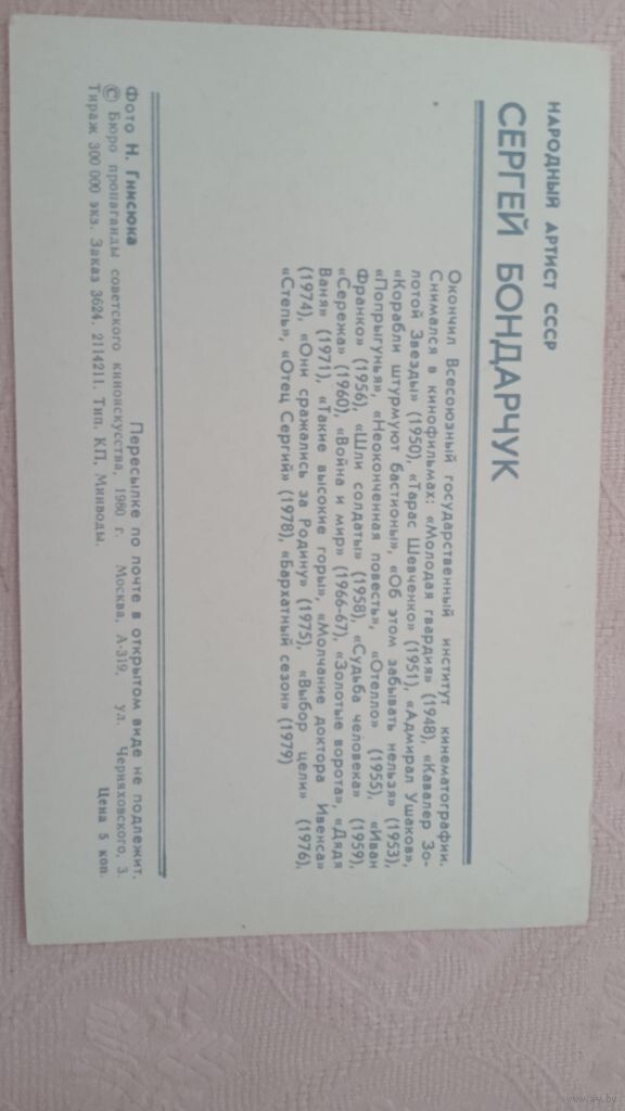 Актер СЕРГЕЙ БОНДАРЧУК 1980Г.М.