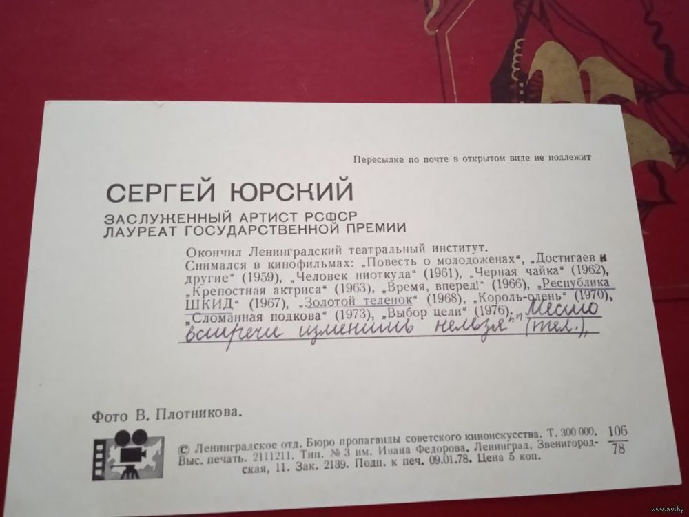 АКТЕР СЕРГЕЙ ЮРСКИЙ 1978Г