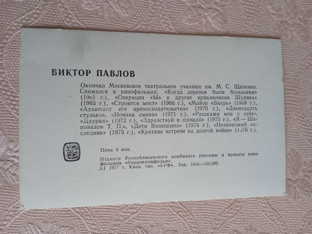 Актер Виктор Павлов 1977г
