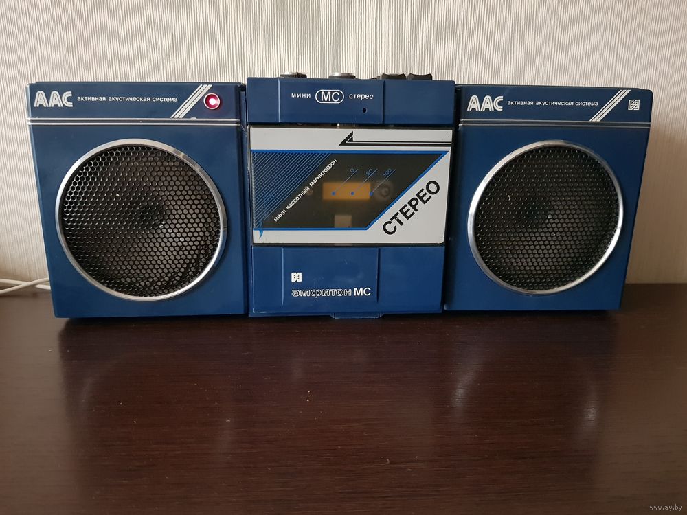 Первый модульный серийный советский магнитофон - "Амфитон МС" (мини). СССР. 1988 г. РАРИТЕТ. РАБОЧИЙ! Активная акустическая система, 1 кассетный. Одна колонка выносится в сторону. Удобная ручка. Хорошее внешнее состояние.