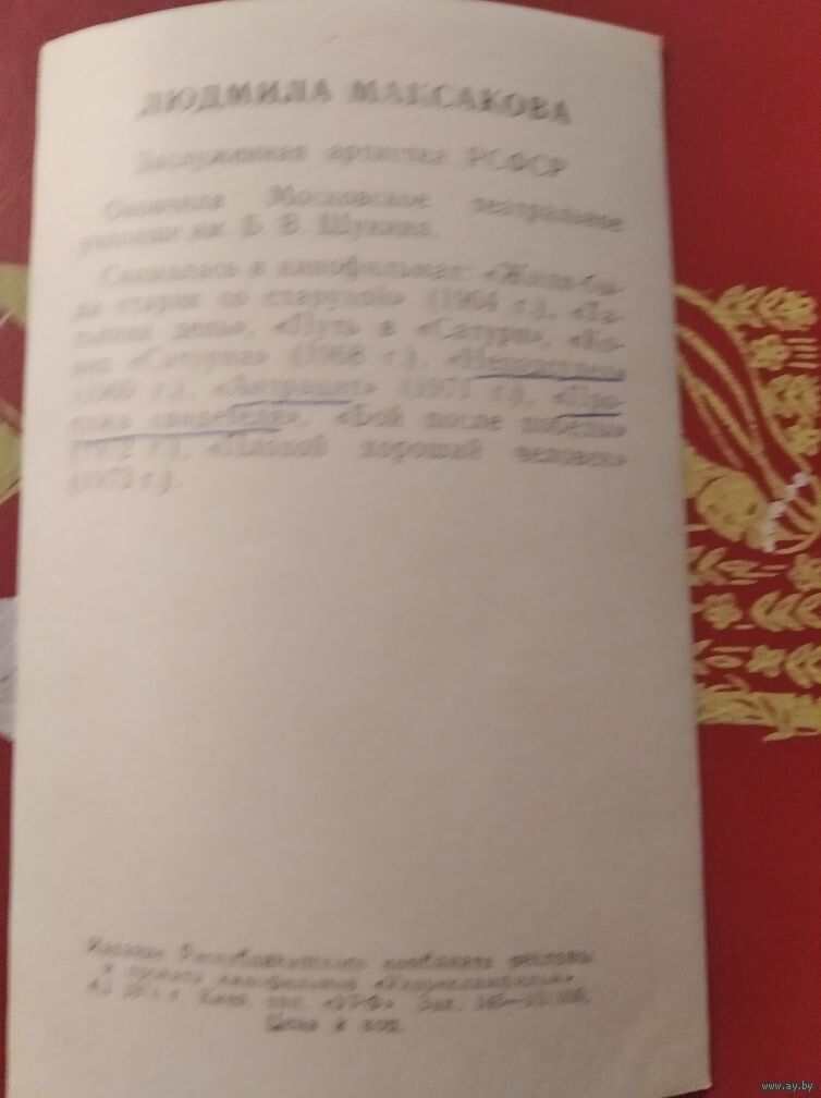 Актриса Людмила Максакова 1974г