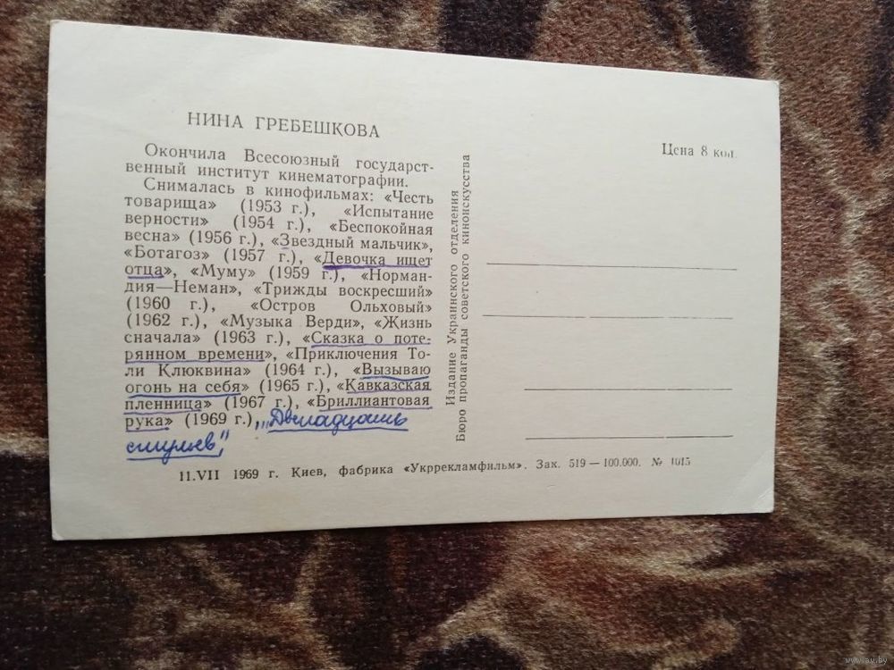 Актриса Нина Гребешкова.1969г