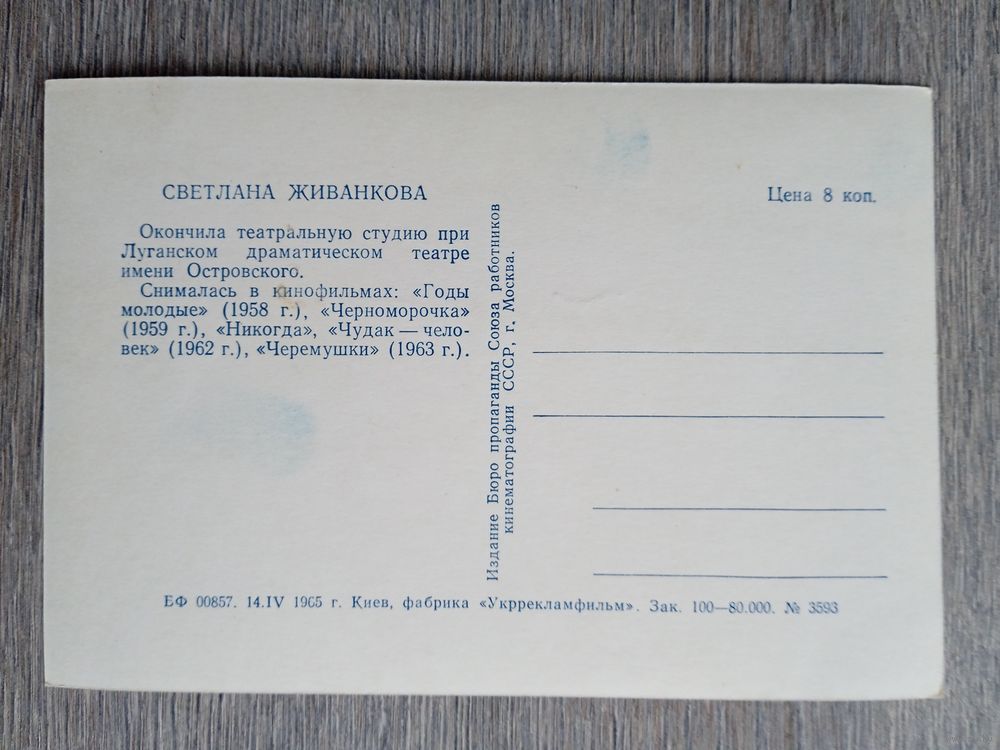 Актриса Светлана Живанкова