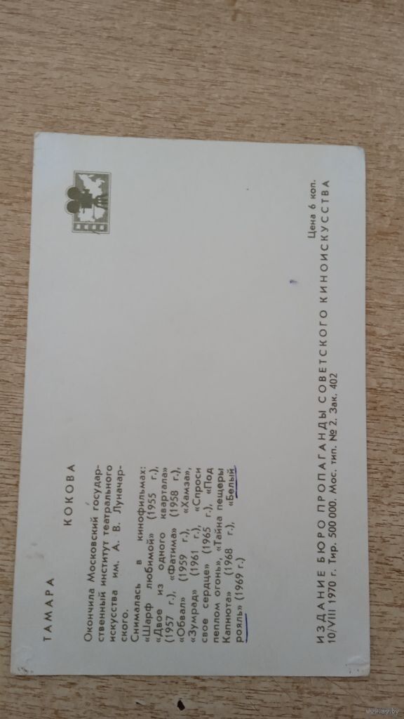 АКТРИСА ТАМАРА КОКОВА 1970г
