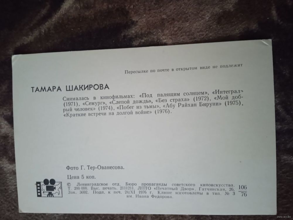 Актриса. Тамара Шакирова.1976г