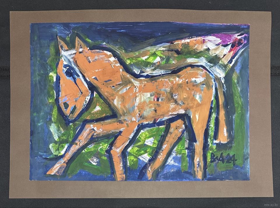 Акулов В.И "Любимая лошадка", 2024г.Бумага,акрил. Размер с паспарту 70х50 см.