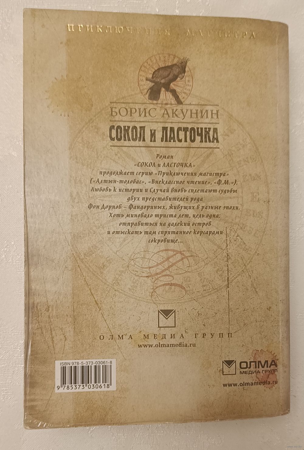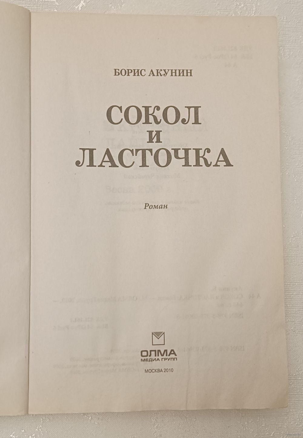 Акунин Борис. Сокол и ласточка (приключения магистра), М., Олма Медиа Групп, 2010, стр. 447, мягкая обложка, обычный формат .